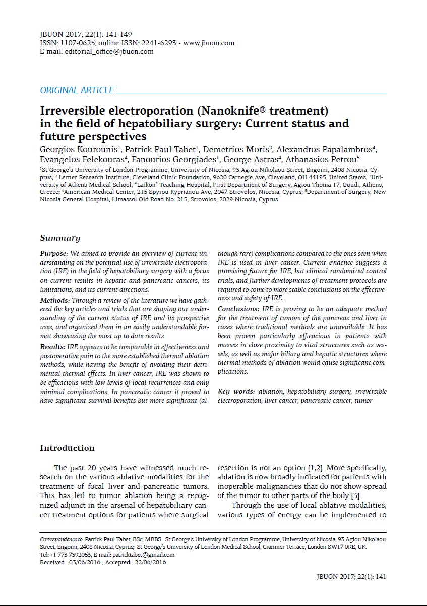 Irreversible electroporation (Nanoknife® treatment) in the field of hepatobiliary surgery: Current status and future perspectives